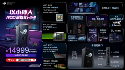 ROG 魔霸9 Mini 已经在京东平台正式开启预售,全系享受国家补贴20%,可叠加电商平台满减优惠!